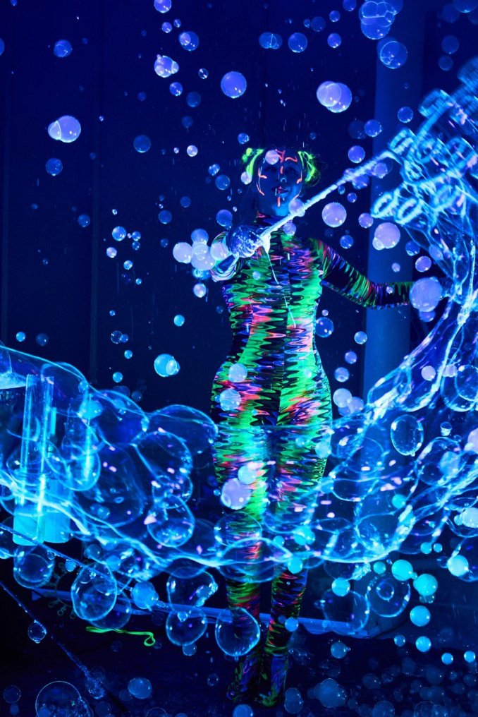 Неоновое шоу мыльных пузырей